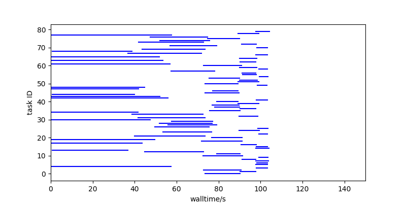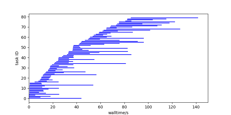 Here’s a fake run of 80 tasks of random duration, running with 16 cores: